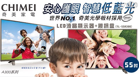 只要22,900元(含運)即可享有【CHIMEI奇美】原價32,990元55吋LED液晶顯示器+視訊盒(TL-55A300)(含基本安裝)1台,購買即享3年保固!